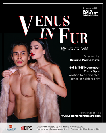 “You want funny? You want sexy? Then you’ll want to see VENUS IN FUR.” Thomas, a beleaguered playwright/director, is desperate to find an actress to play Vanda, the female lead in his adaptation of the classic sadomasochistic tale Venus in Fur. Into his empty audition room walks a vulgar and equally desperate actress—oddly enough, named Vanda. Though utterly wrong for the sophisticated part, Vanda exhibits a strange command of the material, piquing Thomas’ interest with her seductive talents and secretive manner. As the two work through the script, they blur the line between play and reality, entering into an increasingly serious game of submission and domination that only one of them can win. A mysterious, funny, erotic drama that represents yet another departure for the multifaceted David Ives. Directed, produced, and performed by Kristina Pakhomova and Khairul Kamsani.